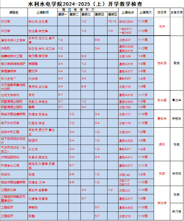 开设的工程测量、工程经济、灌溉与排水工程学、水轮机等32门次课程进行了检查。本次检查主要对任课老师课前准备及到岗上课的情况、学生出勤及课堂纪律情况、教材保障及使用情况、教学设备运行等相关内容进行了全面检查。综合检查情况汇总如下: