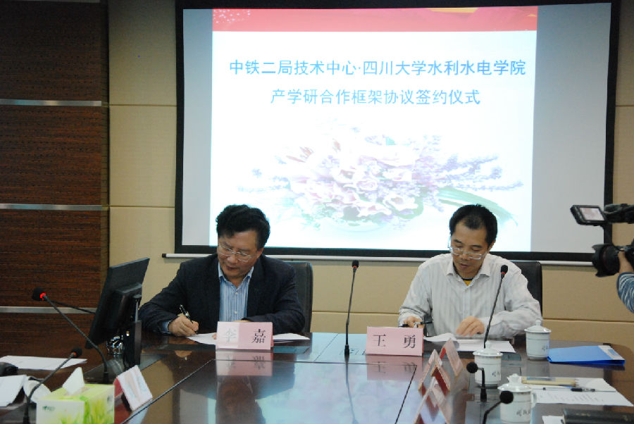 院长李嘉教授和中铁二局副总经理、总工王勇教高签署协议
