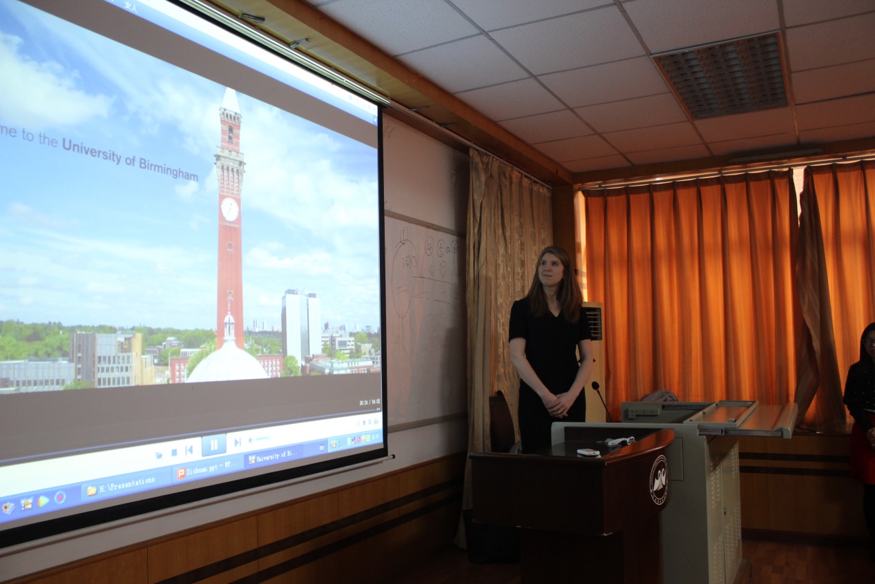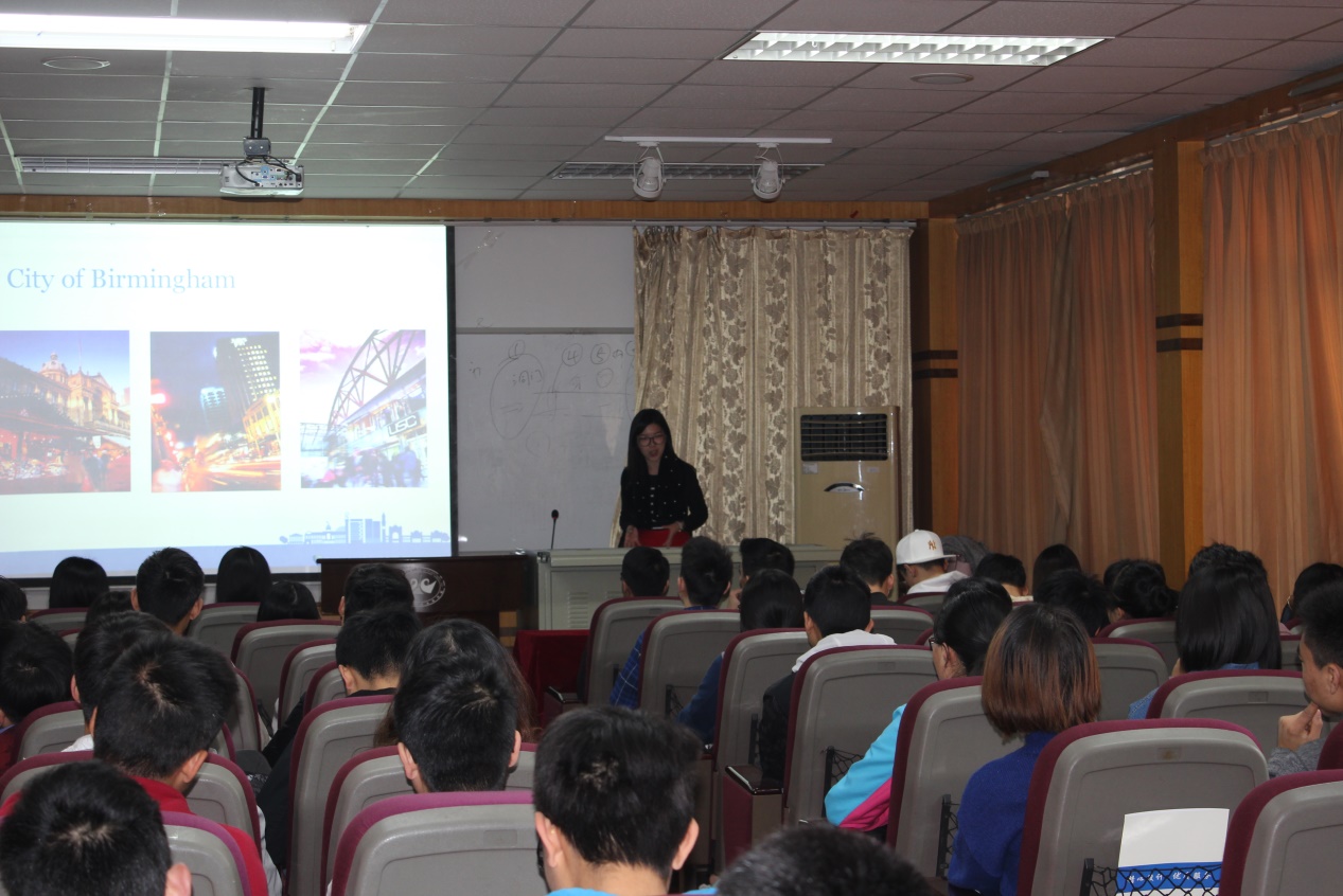 首先,来自伯明翰大学的项目负责人介绍了伯明翰大学的基本情况、重点介绍了学术和科研实力,随后曾经在伯明翰大学留学的Lisa详细为同学们详细介绍了伯明翰大学校园学习生活条件、校园文化以及她在交流学习的所见所闻和感受,让大家身临其境地体会到了国外学习和国内学习的不同,使大家对海外学习计划有了更多了解。