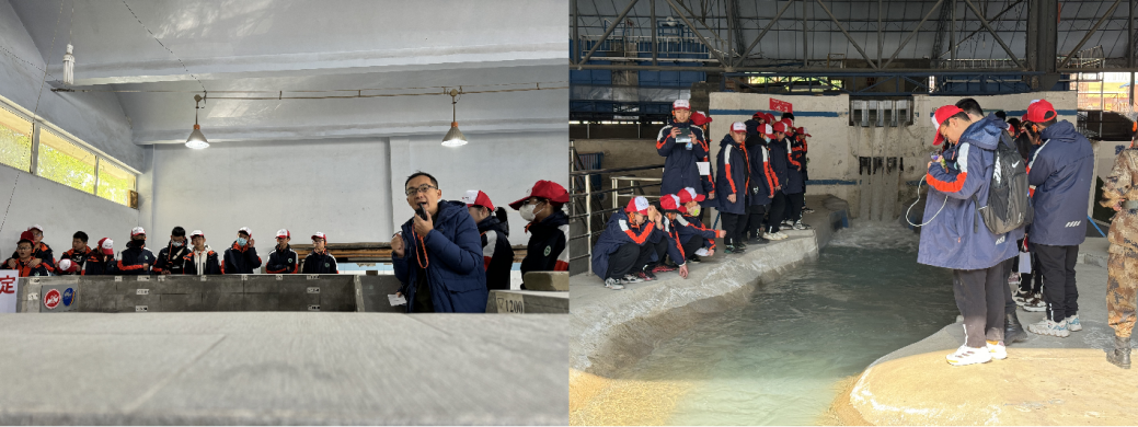 在科研、教学和社会服务等方面所取得的成绩,以及本次科普活动的主要内容和注意事项。在水工结构试验厅,杨宝全老师带领学生们探索水利枢纽工程结构安全的奥秘,讲解不同地质条件下水利枢纽工程的结构特点和受力情况,以及通过实验手段研究这些大国重器工程安全的重要性,还就如何提升结构安全性提出了前沿的技术策略与见解,并鼓励同学们认真学习,将来投身到水利事业的建设和运维工作中。在讲解过程中,杨老师还介绍了水利工程领域的相关前沿技术,如智慧水利、新型建筑材料的应用、结构优化设计方法等,引发了同学们的热烈讨论。在高坝水力学模型区,科普讲解员介绍了水利枢纽工程的挡水建筑物、泄水建筑物、引水发电建筑物等,揭秘水利枢纽工程的精妙布局设计,并重点强调了泄洪安全对于水利枢纽工程的重要性,列举了一些泄洪安全技术的最新突破与实际应用案例。