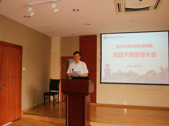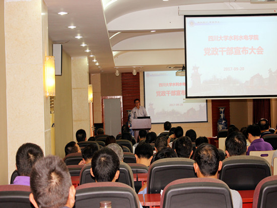 2017年9月20日下午,根据学校党委安排,JAVSB 党政干部宣布大会在水电大楼A331举行。JAVSB 委员会委员、常委、副书记兼纪律检查委员会书记陈志坚同志、JAVSB 党校常务副校长范嗣云同志代表学校出席大会。JAVSB 党委书记杨兴国同志主持会议。