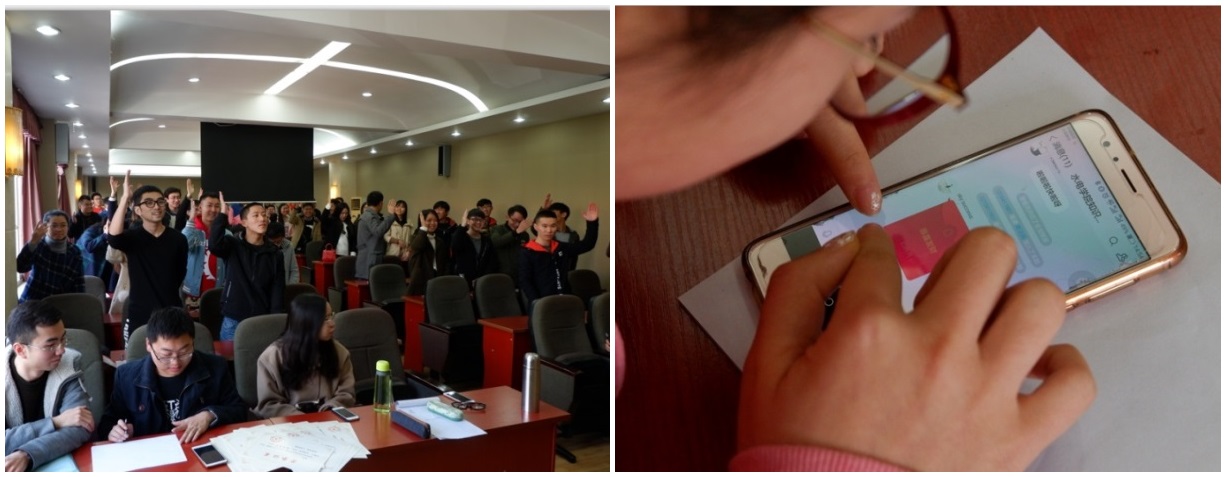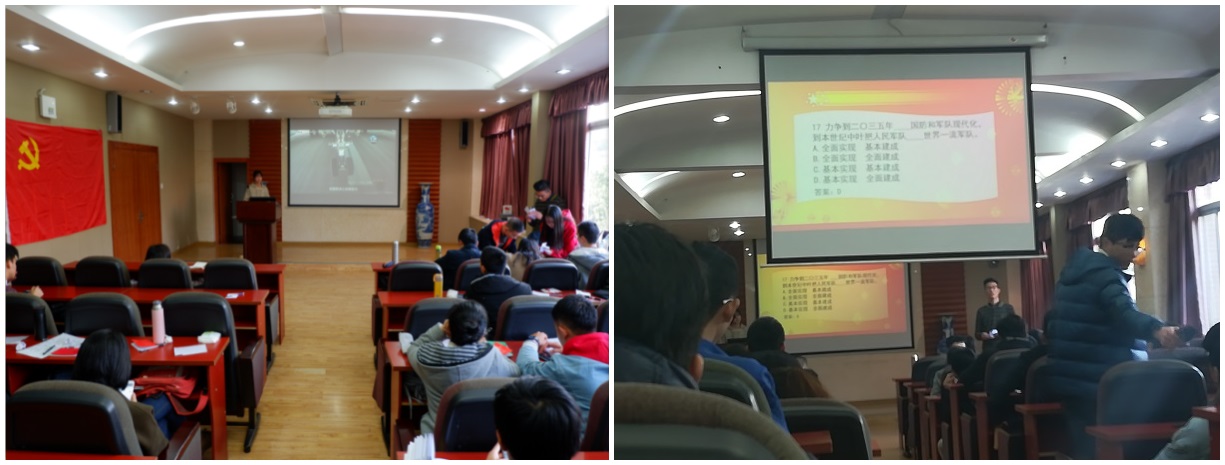 为贯彻落实党中央关于深入学习贯彻十九大会议精神的要求,推动十九大精神学习工作在全院学生中广泛开展,在JAVSB 党委的指导下,JAVSB 学生党支部联合组织 “学习十九大精神”知识竞赛。本次知识竞赛于2017年12月8日下午2点30分在水电大楼A311举办。本科2014级生党支部,本科2015级生党支部、研究生党支部成员均参与本次知识竞赛。研究生兼职辅导员文艳琳老师、17级兼职辅导员胡正红老师作为特邀嘉宾也积极参与知识竞赛互动。