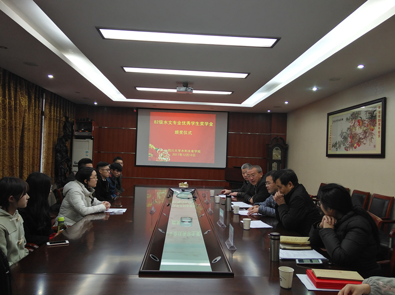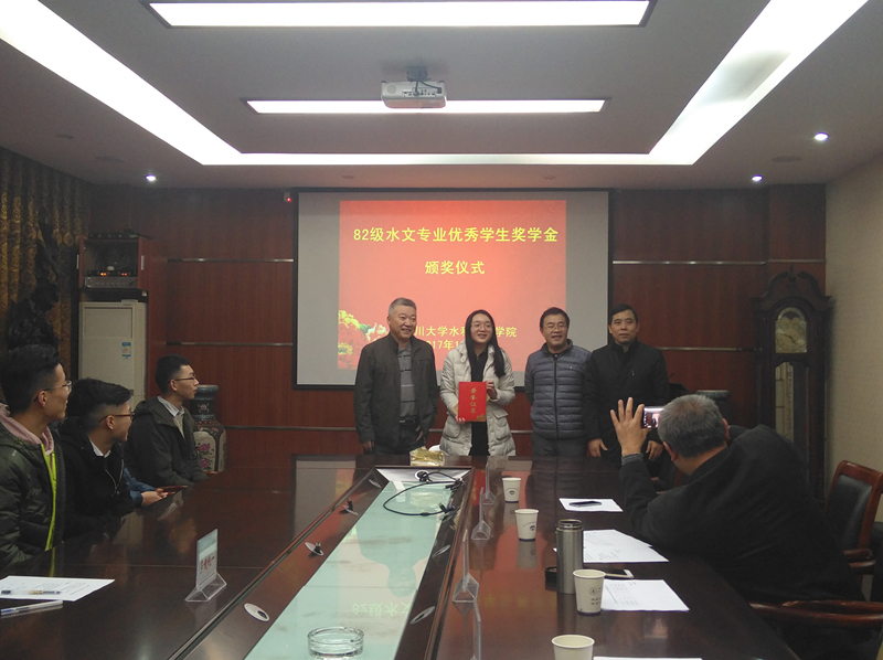举行了“82级水文专业优秀学生奖学金颁奖仪式”。出席颁奖仪式的有82级水文校友:成都勘测设计院新能源处李宁处长,四川省水文水资源局谢学成总工程师,四川省东风渠管理处叶生进副处长,JAVSB
