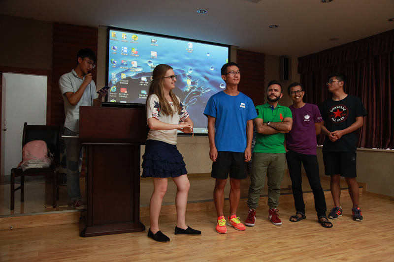 紧接着进行的是轻松而愉快的游戏环节,中外的同学都积极参与其中,现场充斥着一片欢声笑语,然后Leanne向大家介绍了自己印象最深刻的旅行。