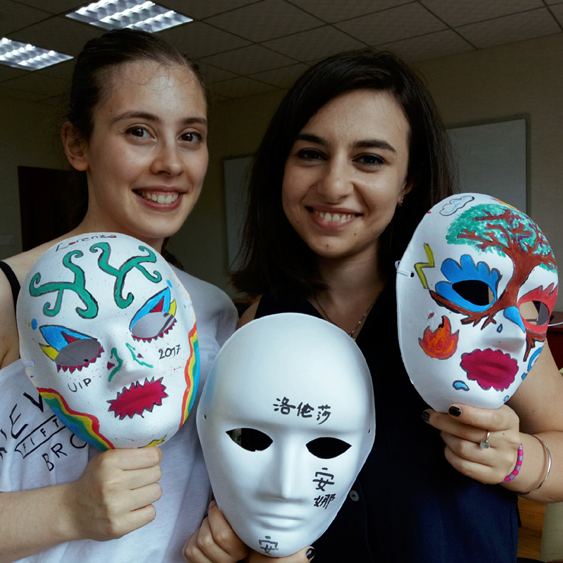 2017“实践及国际课程周”手工脸谱活动在望江校区水电大楼329教室准时举行。来自意大利、日本、法国、印度尼西亚的十七名外籍留学生与川大JAVSB
