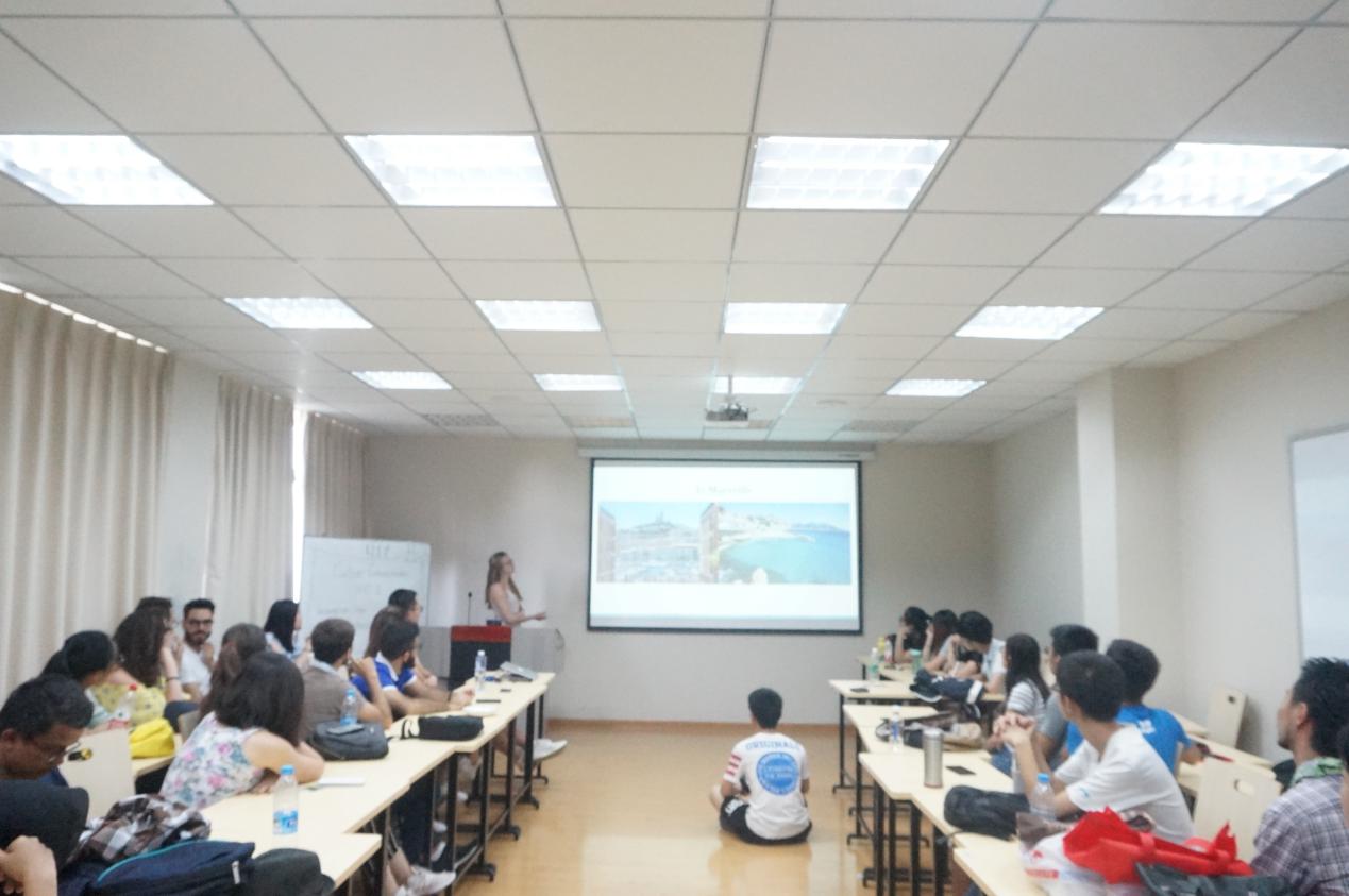 2017年7月10日下午3点,在JAVSB 大楼a座329教室举行了“实践与国际课程周”国际交流营的第二次主题交流活动,这次展示的国家有印度尼西亚(之后简称印尼)、法国以及日本,由梁婷同学主持本次活动。