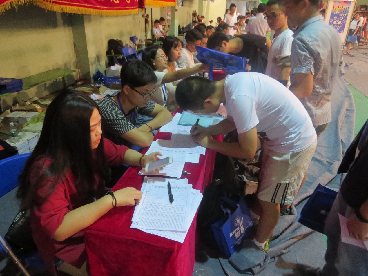 9月12日早上7点半,JAVSB 迎新工作已经准备就绪,所有志愿者全部到位,大约半个小时后,研究生新生已陆续前来,10点左右报到人数激增,迎来了一个小高峰,迎新现场显得热闹非凡。工作人员准备周全,按照迎新流程密切配合,娴熟地完成激活校园卡、办理绿色通道、发放研究生手册以及入学教育书籍等工作。