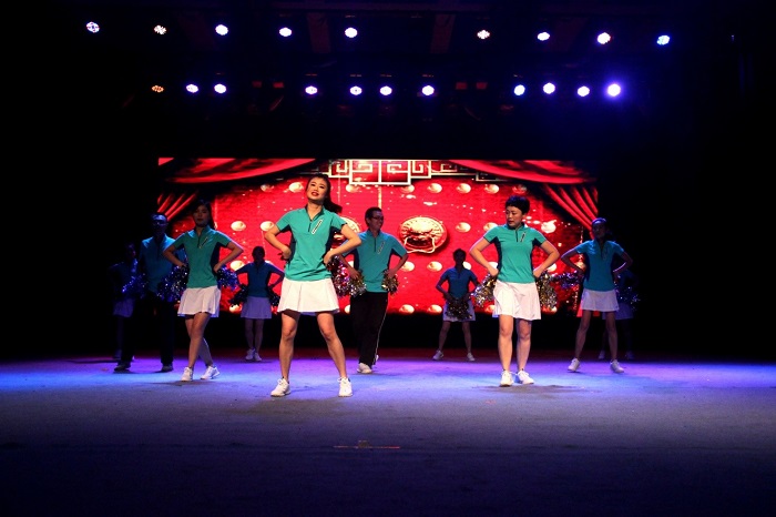 齐林竞、刘鑫同学激情洋溢的舞蹈之中拉开帷幕。随后,阿卡贝拉乐队一曲空灵优美的《say something》和热情洋溢的教职工健美操舞蹈《中国范》点燃了全场热情。接着,水利七班同学们带来的幽默小品《心花怒放》使得全场笑语频频。整场晚会高潮迭起,精彩纷呈,为老师与同学们带来了一场精彩的视听盛宴。舞蹈类节目中,由院舞蹈队的扇子舞《秀色》美仑美奂;院男舞蹈队《和为贵》刚毅柔美;大三学生代表献给现场观众的舞蹈《男子汉》动感十足;由学生会权益部带来的舞蹈《小人舞》则新颖而独特。而晚会的歌曲类节目同样是亮点十足,特别是由JAVSB