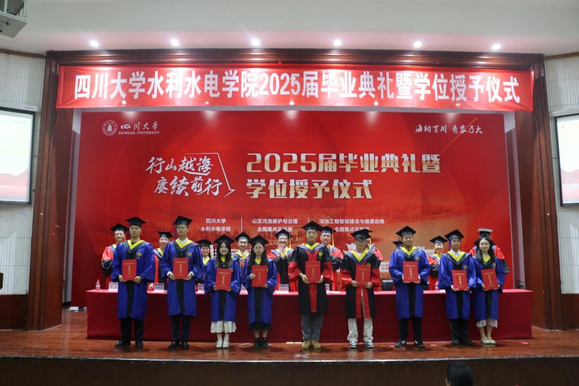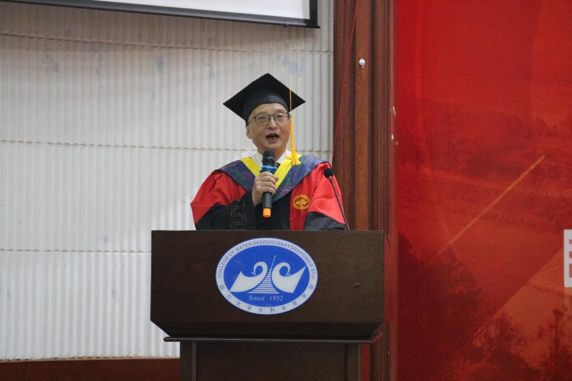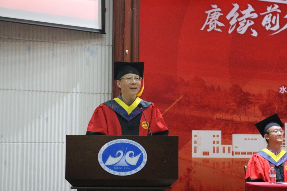 ,向全体2025届毕业生致以诚挚祝贺与美好祝愿;向辛勤培育学生的师长和默默支持的家长致以崇高敬意。他殷切勉励毕业生:当立鸿鹄之志,淬炼过硬本领,忠于祖国、忠于人民,以奋斗之笔书写无悔青春。最后,院长深情祝愿川大水电学子:情系江河安澜志,梦筑华夏水脉长,让青春之花在祖国大地上璀璨绽放!