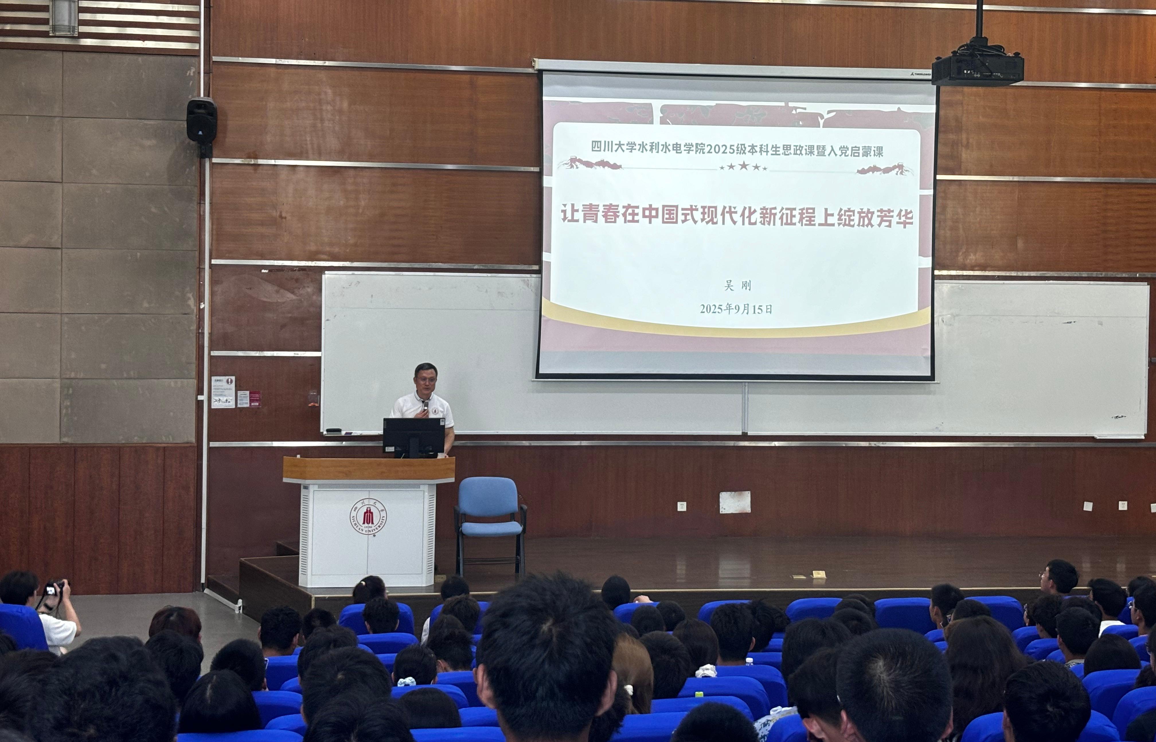 本科新生开学第一课在江安综合楼C407举行。吴刚以“让青春在中国式现代化新征程上绽放芳华”为主题,为全体新生讲授思政课。他从中国共产党的百年奋斗史引入系统阐述中国的复兴之路,鼓励同学们自觉将个人理想融入强国建设、民族复兴伟业;从JAVSB