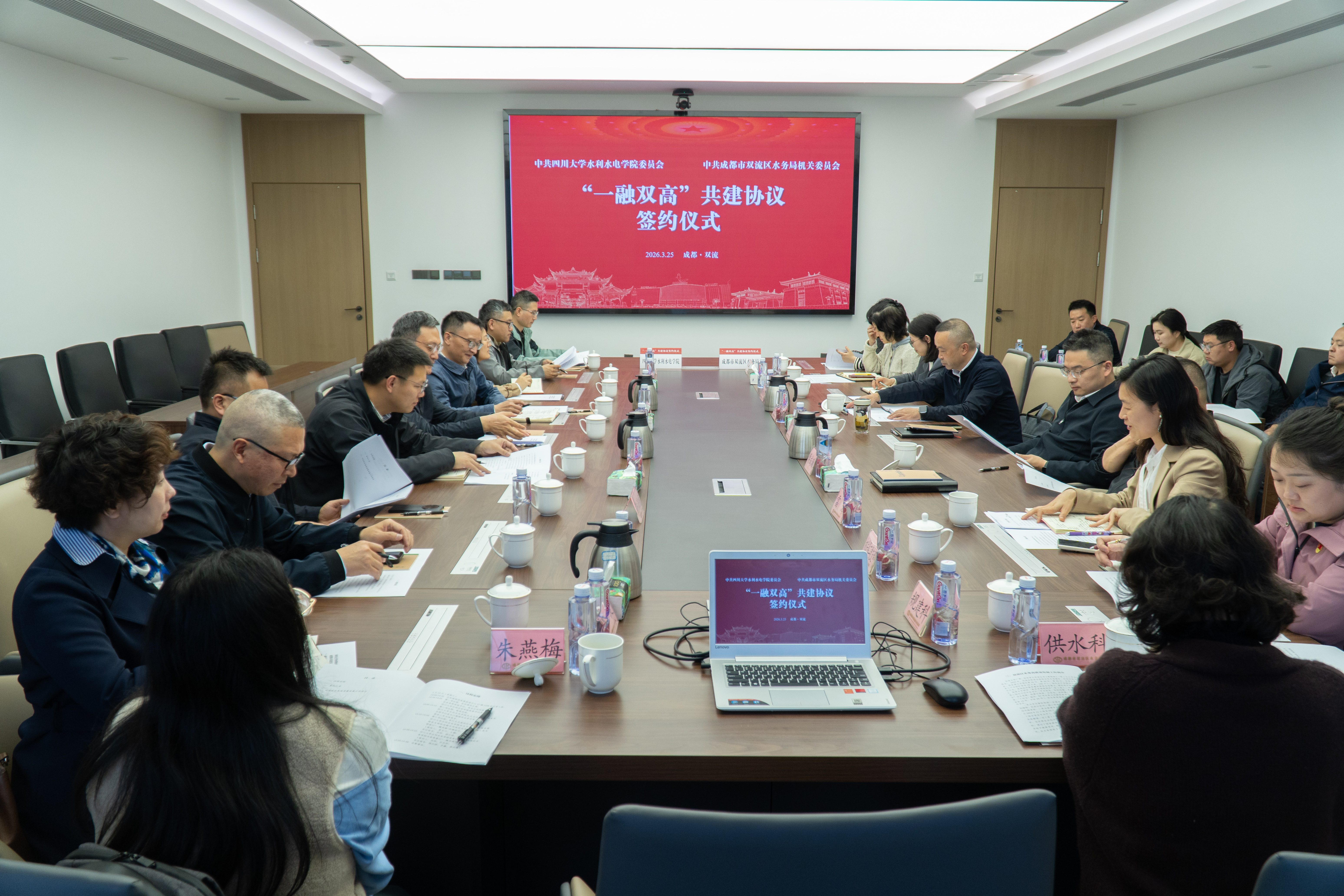 校地携手,共绘新篇。3月25日,学院与成都市双流区水务局签署“一融双高”共建协议。双流区委常委、区总工会主席苏巍,区政府党组成员、双流自贸试验区管理局专职副局长傅成曦,学院党委书记吴刚,院长杨兴国出席签约座谈会。