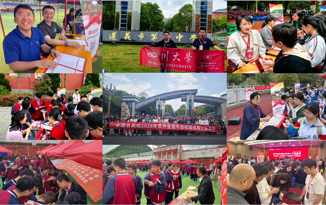 “双一流”建设成果、学科优势、专业特色、师资力量、人才培养模式、录取政策、奖助体系、就业前景等核心内容,与高三学子展开深度互动。同时,针对贵州考生关心的招生计划、选科要求、专业选择、志愿填报技巧等问题,老师们逐一耐心解答,消除考生与家长的疑虑。在各中学咨询点,川大精美的招生宣传册、学科介绍手册被争相领取,展台前人头攒动。许多同学认真聆听、仔细记录,积极表达对川大的向往之情,纷纷表示将以川大为目标,全力冲刺高考。