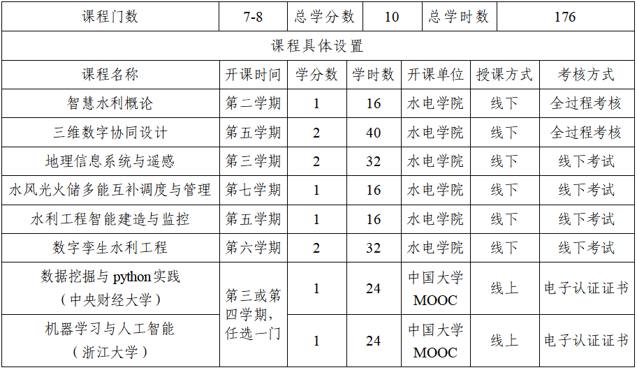 授课安排:采用独立开班的方式开课,原则上安排在周末及寒暑假授课(具体上课时间另行通知,部分与水利科学与工程等相关专业培养计划内相同的课程进行合班授课)。