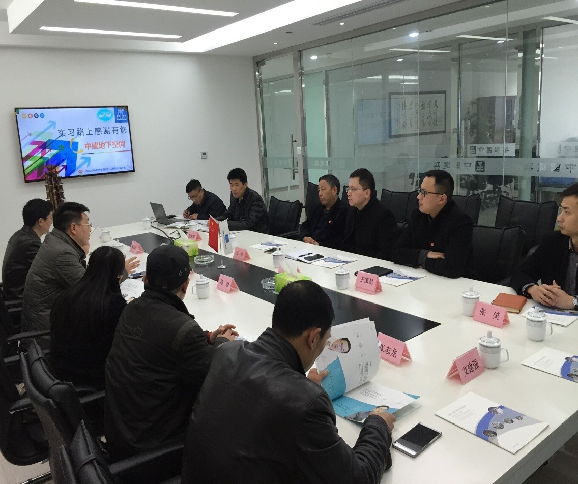 2017年3月16日下午,JAVSB 副院长刘超教授、岩土与地下工程系主任张建海教授、支部书记陈群教授、陈向东老师、张志龙老师及4名2013级本科同学一行9人赴中建地下空间公司开展交流活动,同中建地下空间公司田强常务副总经理、李鹏助理总经理、郭新国助理总经理、项目管理部王家星经理、安全部张笑经理、技术中心艾建强工程师等领导和技术人员进行了座谈、交流。