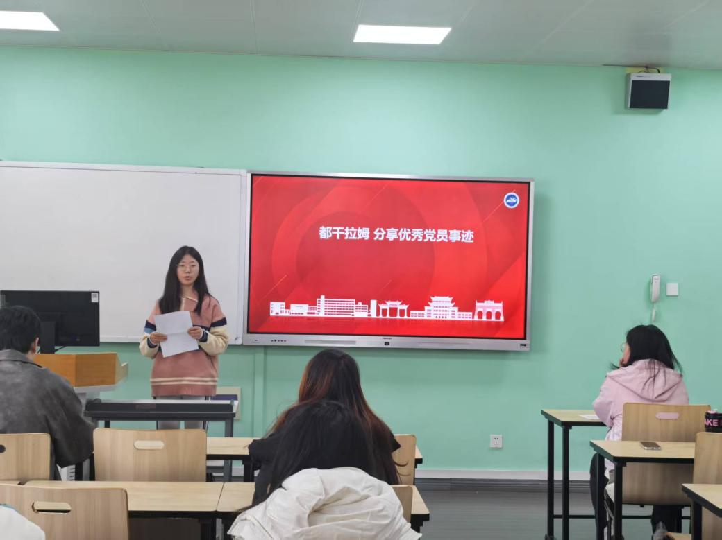 随后,2023级蒋章瀚同学进行《习近平治水论述摘编》学习报告,他从该书的基本背景、内容的六个方面、治水思路及五年规划四个方面向大家分享了他阅读后的所思所想。给同学们带来了新的思路。而2024级都干拉姆同学则是向同学们分享了优秀党员的事迹,为同学们提供了奋斗参照,让大家看到信仰力量与责任担当,鼓励同学们树立远大志向,汲取奋进动力,实现人生价值