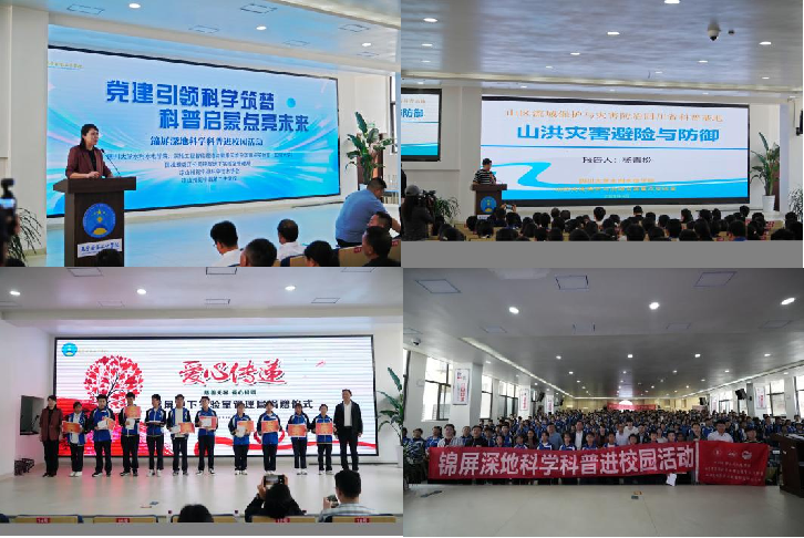 4月18日,在冕宁县开展联合党建学习与科普活动。冕宁县科学技术协会、国投雅砻江公司锦屏地下实验室管理局相关同志和JAVSB师生一起在冕宁县二中,面向300余名初中生开启科普讲座,张茹教授以《深地科学研究构想及进展》为题,系统介绍JAVSB 在锦屏地下实验室开展“深地”“深海”“深空”领域的创新研究和最新成果。杨青松同学作《山洪灾害避险与防御》科普,结合西南地区地质特点,通过动画演示、互动问答、案例分析系统讲解山洪成因、监测预警及逃生技巧,筑牢学生安全防线。锦屏地下实验室管理局副局长申满斌为品学兼优的学生送上助学金和科普书籍,副院长张茹为学生们送上文具用品。